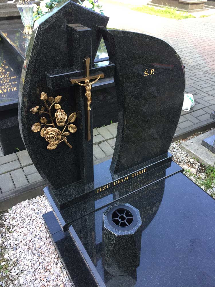 Nagrobek ciemna Impalaadmin2018-07-09T10:38:34+00:00 Opis projektu Nagrobek wykonany z granitu Impala Marikana Szczegóły projektu Rodzaj kamienia: Ciemny granitImpala Marikana Kategorie: Nagrobki Podobne produkty