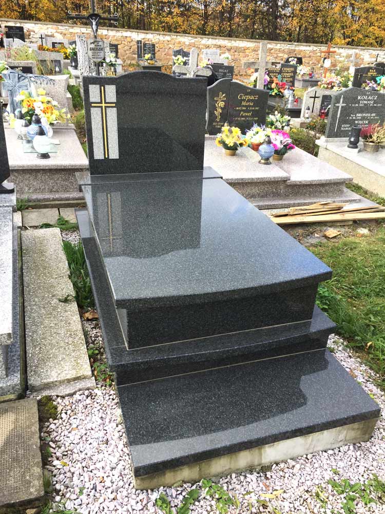 Ciemny granit doskonale sprawdza się jako materiał na nagrobki oraz grobowce. Jest to najbardziej klasyczny i bezpieczny wybór. Jego szlachetność łatwo podkreślić pozłacanymi zdobieniami lub wykończeniami ze stali nierdzewnej. Litery wykonane w takim stylu są doskonale widoczne. Minusem ciemnych granitów o jednolitej strukturze jest konieczność częstego mycia powierzchni gdyż wszelkie zabrudzenia są na nim bardzo widoczne.